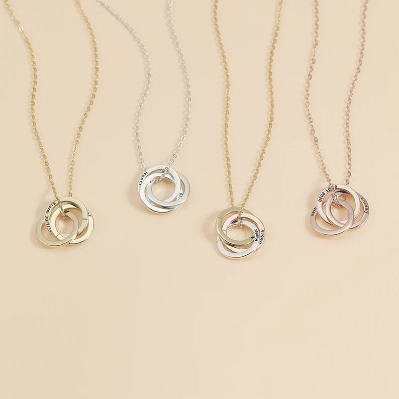 The linked circles necklace is a special kind of jewelry. Unlike other jewelry, it has a special meaning to the wearer. It can engrave your love or your name. Wearing it, it seems to have the most The company of a loved one will not feel lonely. I hope you can find personalized jewelry that suits you.